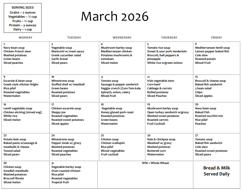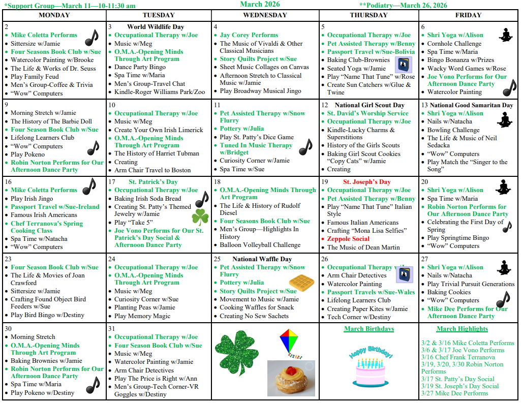 Calendars March 2026 Activities CalendarDownload March 2026 MenuDownload Contact Us 25 Brayton AvenueCranston, RI 02920USA (401) 946-9220 info@hopealzheimerscenter.org Facebook